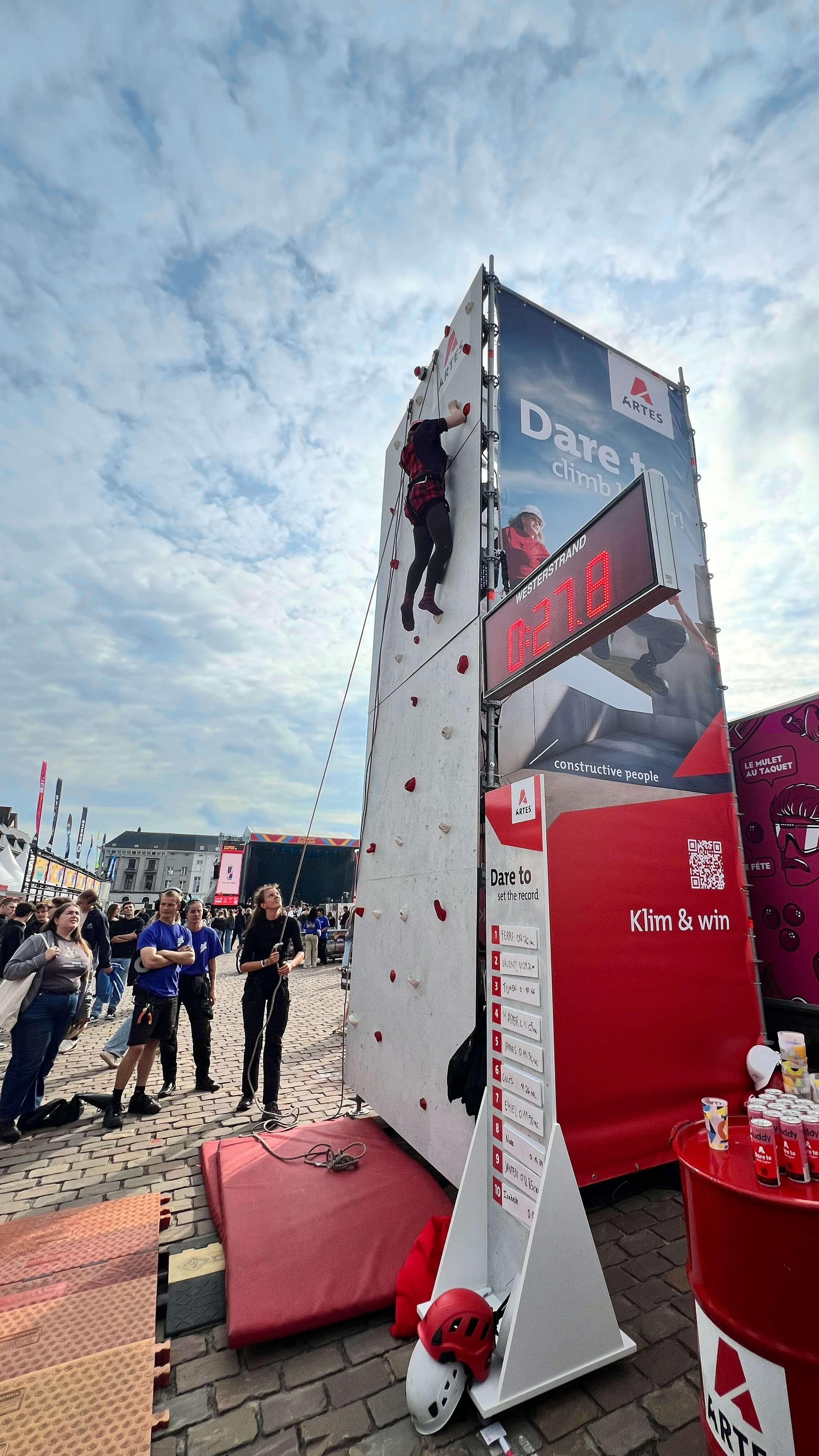 De sterkte van het concept? De vele mogelijkheden! Aan de start van het academiejaar konden de Gentste studenten, een belangrijke doelgroep van Artes, al in primeur kennismaken met ‘dare to’. Op de Student Kick-Off die jaarlijks 30 duizend studenten lokt, viel Artes goed op dankzij de grote klimtoren op het Sint-Pietersplein. Het idee was simpel: wie in de beste tijd naar boven klimt, wint een helikoptervlucht. Zo’n 125 studenten waagden hun kans en lieten daarbij ook hun gegevens achter. Zo kunnen we hen in de toekomst nog gerichter bereiken.