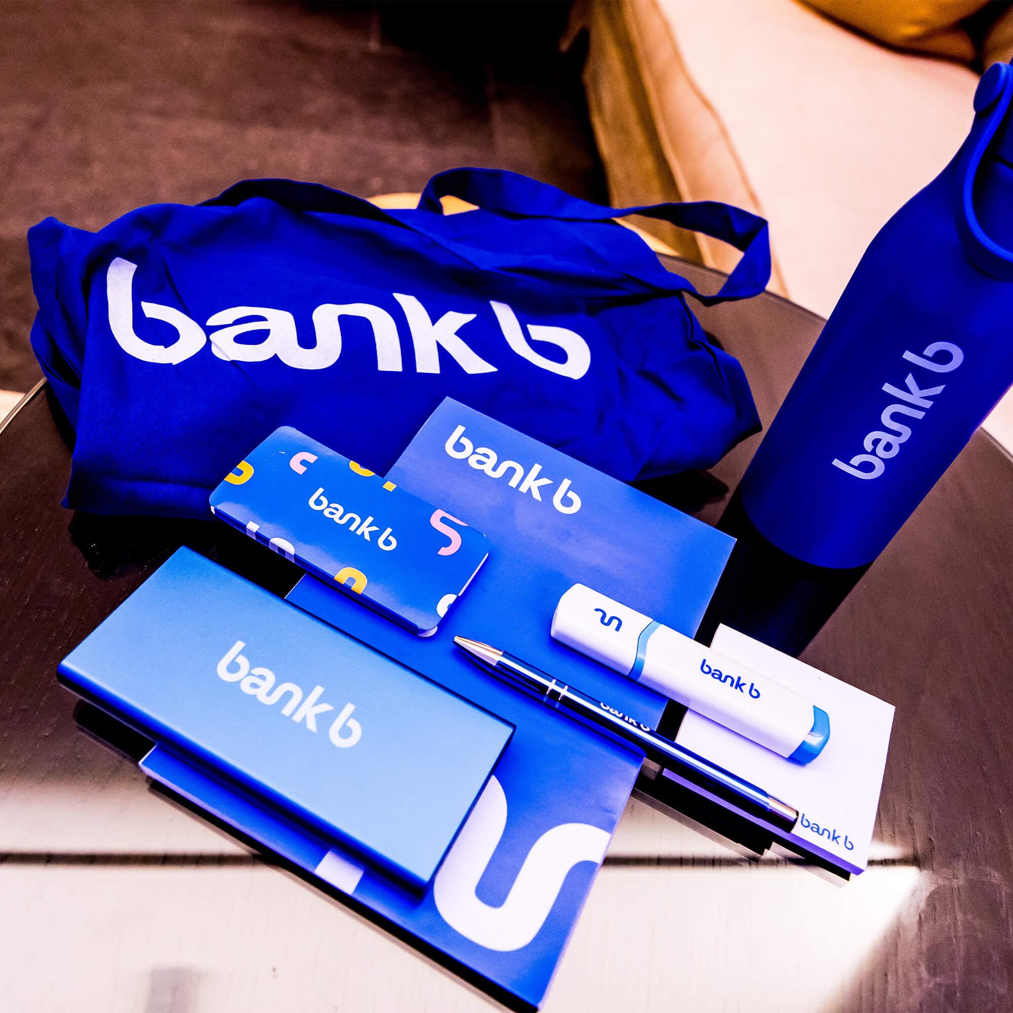 We ontwierpen heel wat nieuwe huisstijldragers: naamkaartjes, PowerPoint-templates, pins, powerbanks, schrijfblokken en nog meer. We onthulden de make-over eerst intern, met het nodige mysterie errond. De medewerkers konden de code van een kluis kraken door tips te verzamelen in het kantoor. Een kluis past dan wel perfect bij de bankwereld, maar er zat meer achter. Want ‘CODE’ is ook het acroniem van de waarden die we uitschreven voor BankB: connectie, optimisme, durf en eigenheid. Aan de basis daarvan? De waardevolle inzichten die de medewerkers ons gaven tijdens strategische workshops.