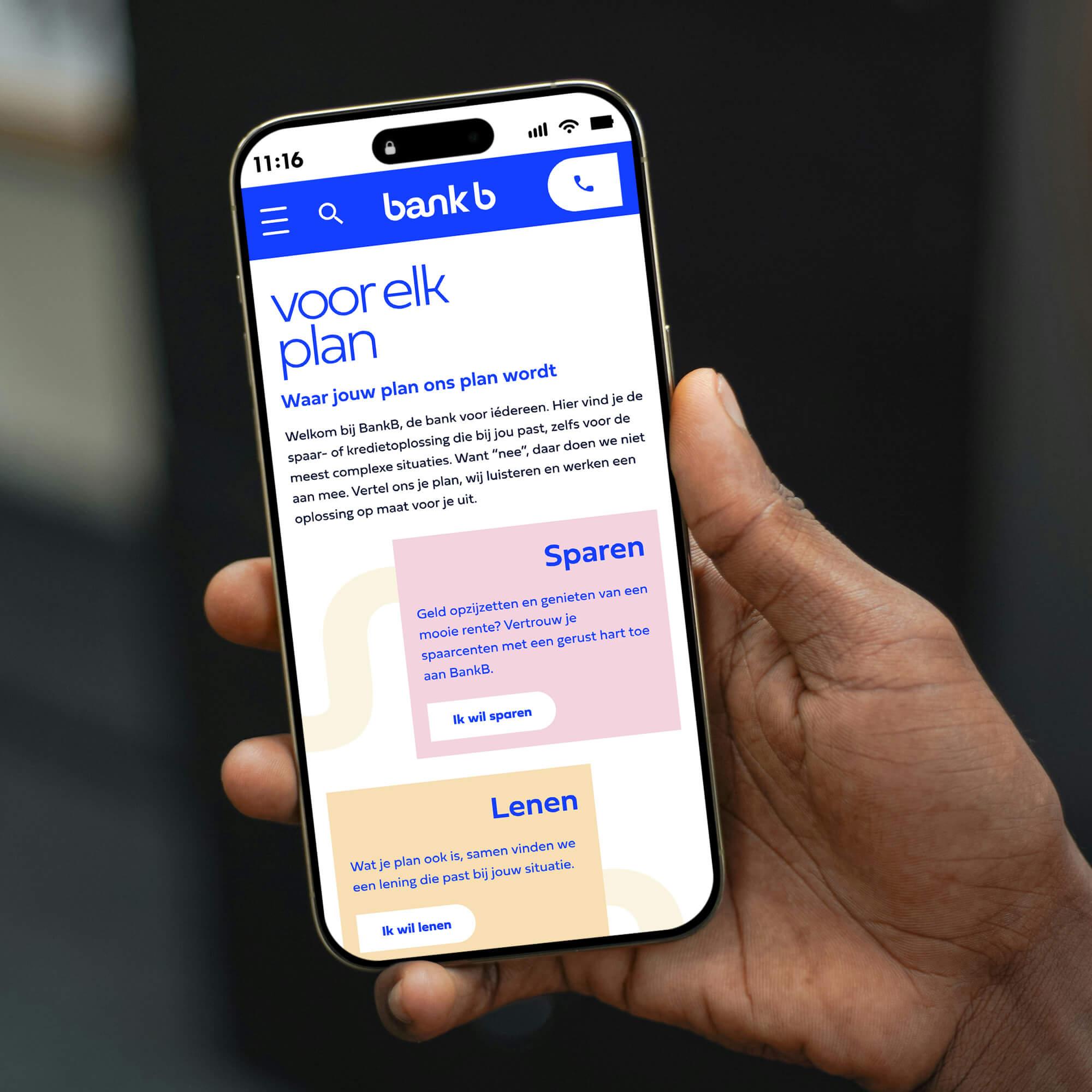 Maak kennis met BankB. Een knipoog naar ‘plan B’, want wie nergens anders een oplossing lijkt te vinden, is bij BankB wél aan het juiste adres. Een bold move om de geuzennaam te omarmen, maar dat durfden we. En de bank ook.
