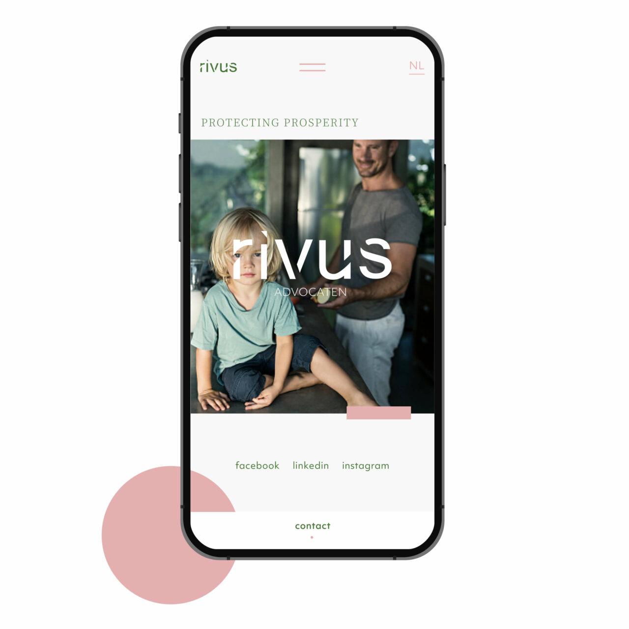 Door een klassieke basis met een moderne twist te creëren zorgen we ervoor dat Rivus zich onderscheidt in de sector. Dat zien we terug in de fonts, de huisstijl en de bijhorende fotografie. De vertrouwde kleuren maken plaats voor een stijlvol donkergroen in combinatie met een fris roze.