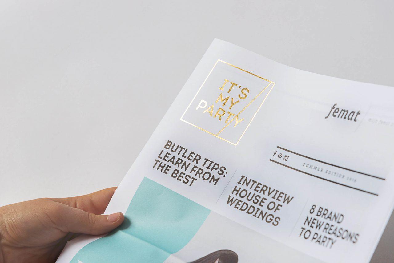 Femat verrast z’n contacten twee keer per jaar met een stukje ‘It’s my Party’ in de brievenbus. Het is een inspirerend krantje waarvan d-artagnan zowel de inhoud als de vormgeving voor z’n rekening neemt. We tonen elke zes maanden de nieuwste producten en trends voor het komende seizoen. Samen met gastchefs en evenementenbureaus brengen we interessante content voor de doelgroep.