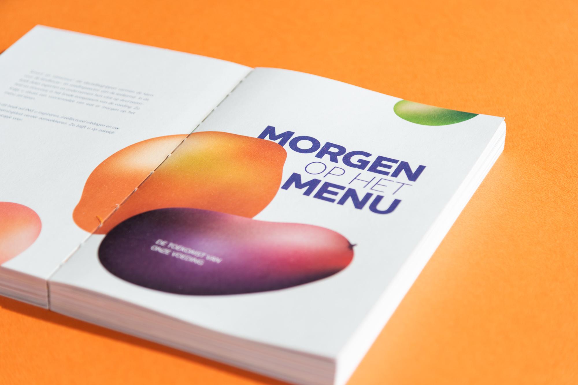Wij bundelden alle verhalen onder de titel ‘Morgen op het Menu’. Het ontwerp is gebaseerd op organische vormen die aan voedsel doen denken, maar tegelijkertijd abstract genoeg zijn om een futuristisch gevoel te creëren.
