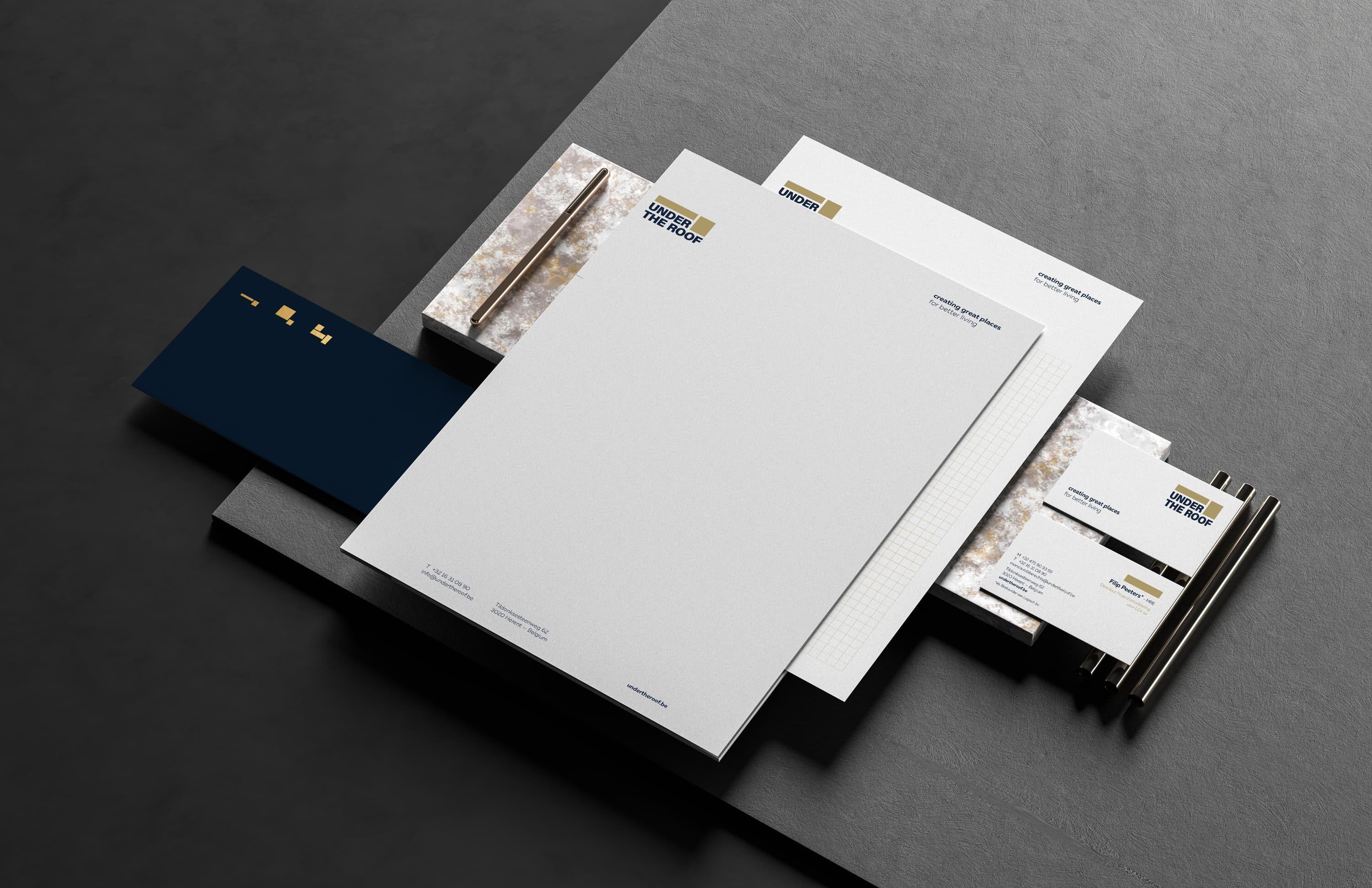 We creëerden niet één, niet twee, maar drie logo’s die de dynamiek van de projecten weergeven. In een strakke no-nonsense vormgeving die perfect past bij hun nieuwe imago. Ook hun briefpapier, enveloppes, stylo’s, paraplu’s, vlaggen en auto’s kregen een make-over. De nieuwe look van Under the Roof is overal!